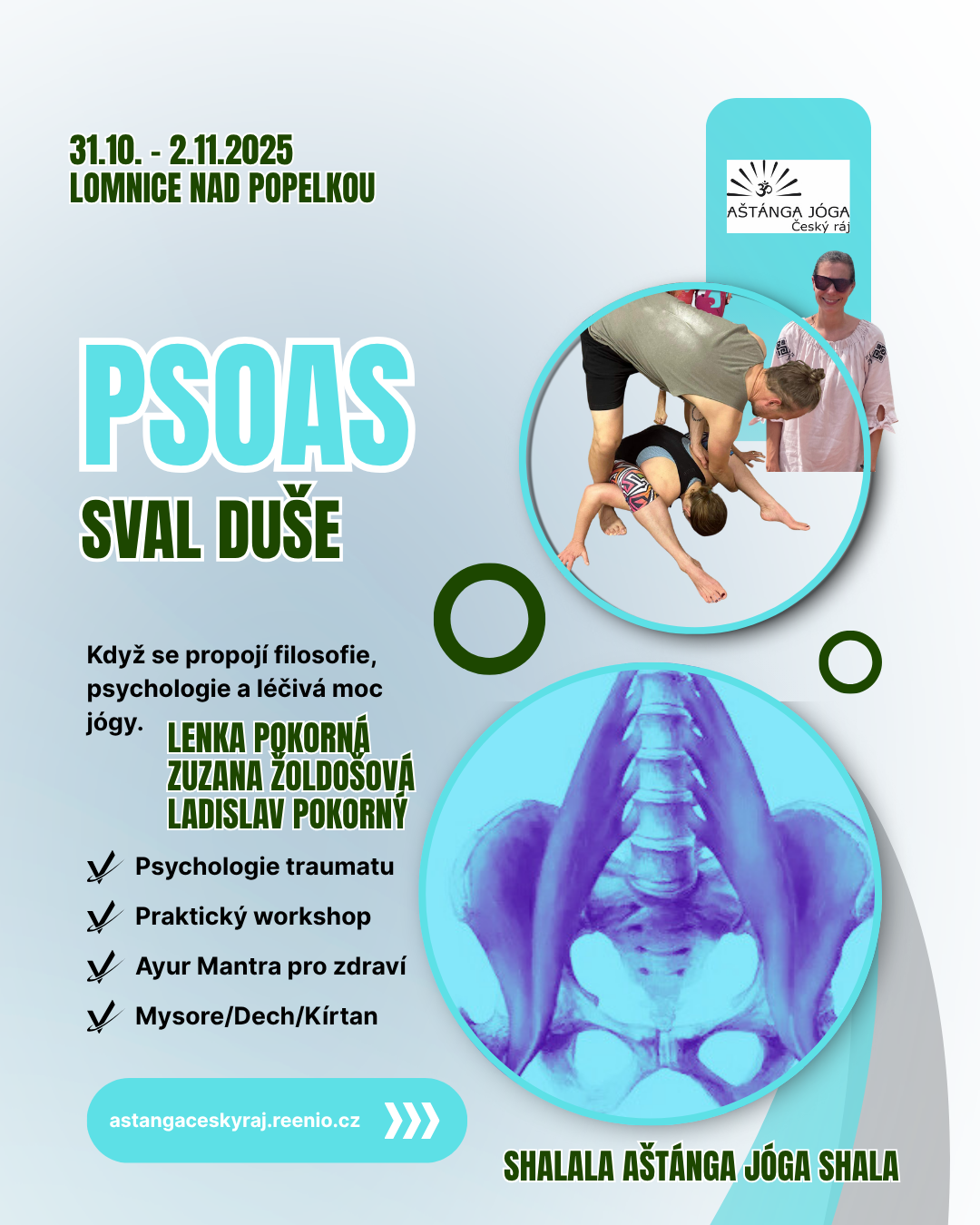 Psoas je svalem duše. Jeho hlavní funkcí je udržovat rovnováhu pánve ve vztahu k páteři a má velkou tendenci se zkracovat a stahovat celou kyčelní oblast. Jako jediný sval propojuje horní a dolní polovinu těla. Když se propojí filosofie, psychologie a léčivá moc jógy, vznikne z toho bohatý program na celý víkend.